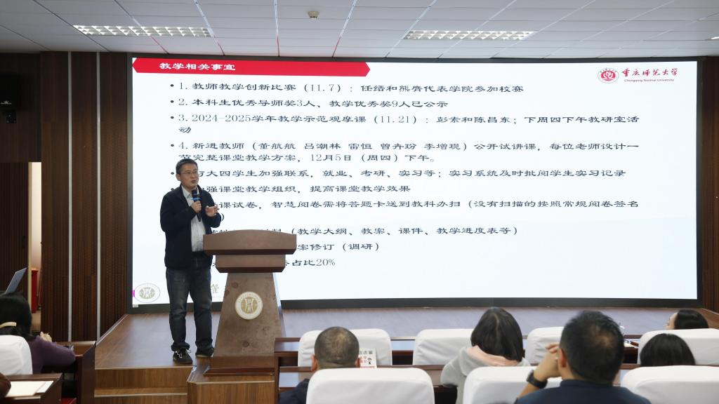 陈宇科副院长着重建议研究生导师加强与其他学院的交流,促进学科交叉融合,对研究生的论文更要严格把关,顺应目前教育形式,做到多学习、多交流、促精进。段俊副院长就十项教学相关事宜、下一届人才培养方案改革、审核性评估教师等问题进行汇总。