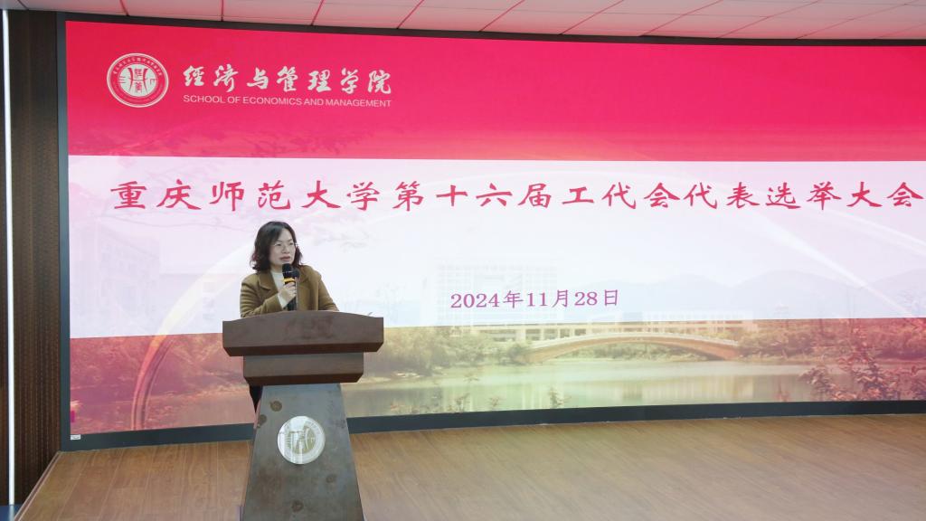 全体教职工会议暨重庆师范大学第十届教代会代表选举大会。学院党委书记钟敏、执行院长郑景丽、副院长陈宇科、段俊与全体教职工出席本次会议。