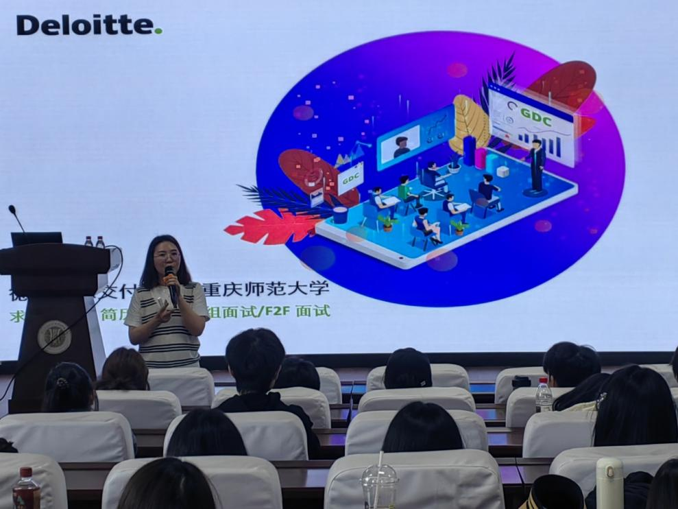 座谈会后,两位行业专家分别为师生带来专题讲座。银海租赁王兆强部长以自身跨领域职业历程为脉络,解读职业选择底层逻辑,结合宏观经济形势为学生提出系统职业发展建议,引导学生树立正确职业观。德勤华庆邓玲经理聚焦求职全流程,详解简历制作优化技巧与各类面试应对策略,为学生提供实操性求职指导与行动清单,两场讲座互动热烈,广受师生好评。